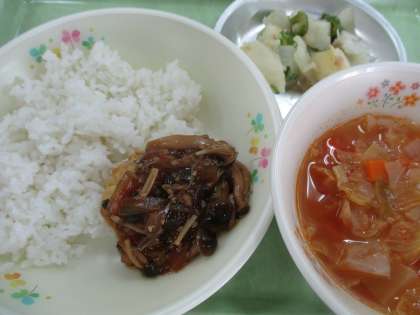 11月18日の給食 公開日 2020/11/18 更新日 2020/11/18 給食室より 18日のこんだては、 ・ごはん ・豆腐ハンバーグきのこソース ・ミネストローネ ・ジャーマンポテト ・牛乳 です。 今日は野菜たっぷりのこんだてです。158gの野菜がとれます。苦手な野菜でも一口は食べてみてください。 いいね(0)