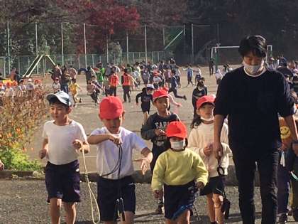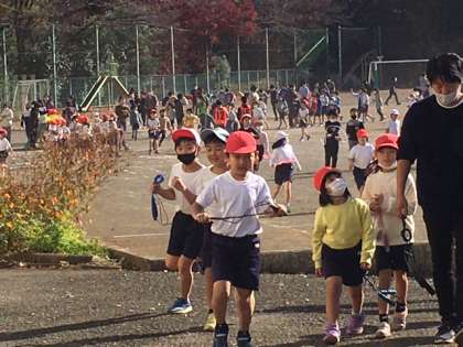 縄跳びをがんばりました。その後、校庭から教室に帰る様子です。
