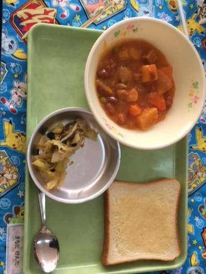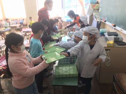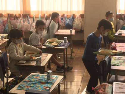 自分たちで配膳を頑張ります。はやくもらった子は、静かに待ちます。