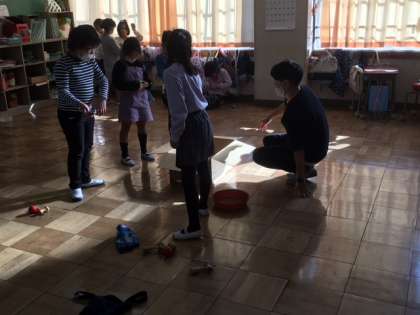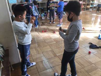 お隣は、コマ、けん玉を頑張っていました。