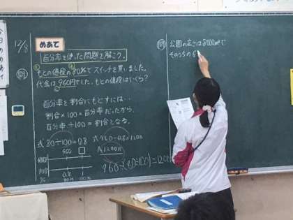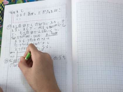算数です。百分率の学習です。ノートをしっかり取ります。
