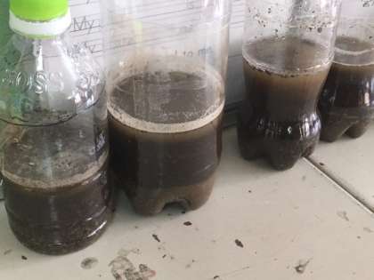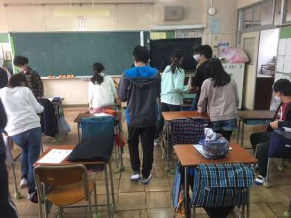 理科室で作った地層のモデルを教室にはこび、いよいよ給食準備です。