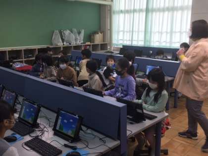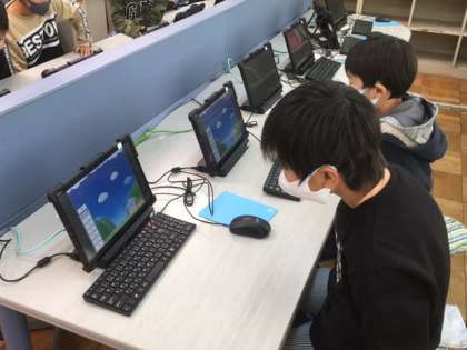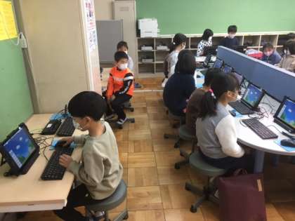 パソコンの使い方を学習しています。次年度配布されるタブレット導入に向けての授業です。