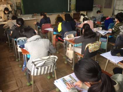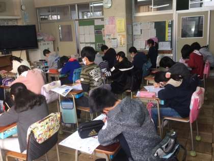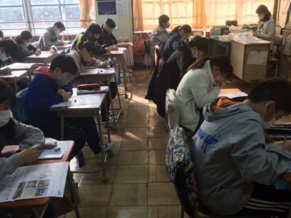英語と社会科のテストに取り組んでいました。