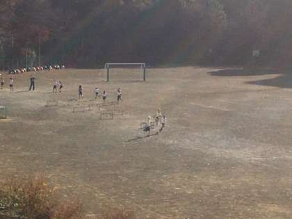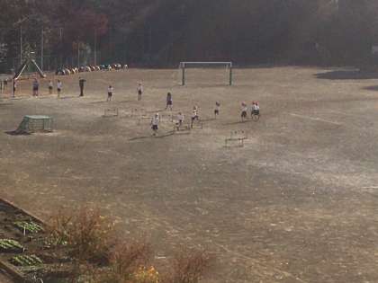 校庭で体育です。ハードルが始まります。
