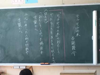 国語です。モチモチの木の面白かったところをお友達に伝えます。