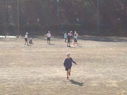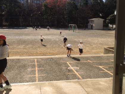 校庭で体育です。二重跳びを頑張ります。