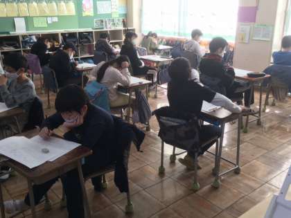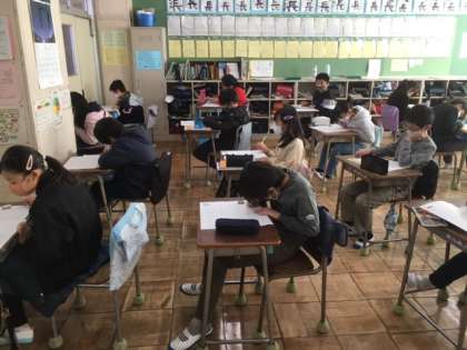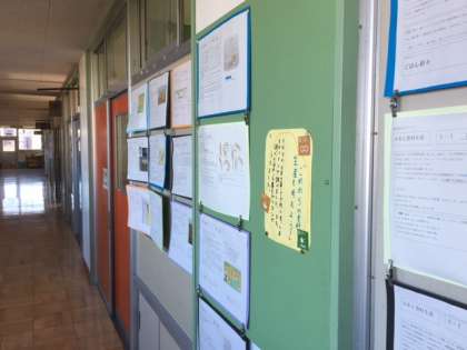 国語です。漢字のまとめに取り組みました。廊下には、社会科の調べ学習が掲示されまいました。SD G'sと結びつけています。