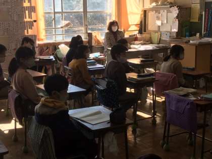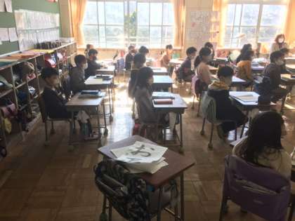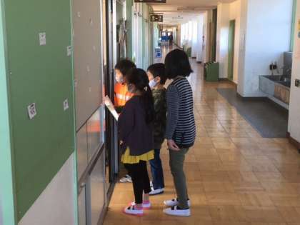 3年生が栽培した小松菜のことを各学年に説明しに行く練習をしています。