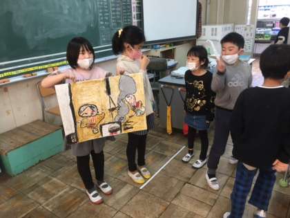 国語です。かさこじぞうの発表に向けて頑張っています。