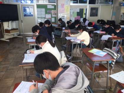 算数の時間です。テストに取り組みました。テストのスケジュールは、毎週金曜日に予定を出しているので分かります。