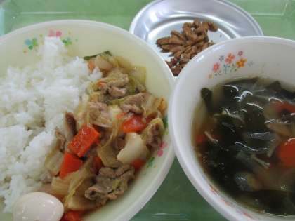 今日は、野菜たっぷりのこんだてです。1日の食事で食べたい量の1/3以上の野菜を食べることができます。残さず食べて元気に過ごしましょう!