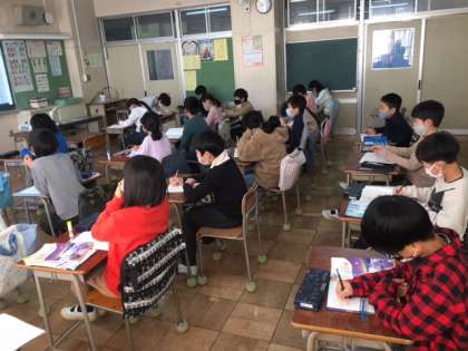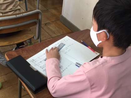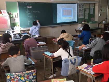 算数です。分数の学習です。仮分数を帯分数に直します。算数のきほんは、4年生までに学習します。この学習はとても大切です。