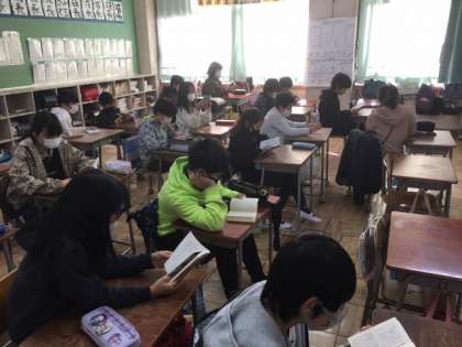 自分の本を静かに読みます。プリントに取り組んでからのクラスもありました。