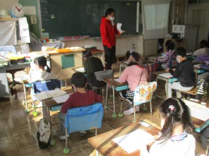 国語です。字のかたちを学習しました。たてながの字、よこながの字を丁寧にかきました。