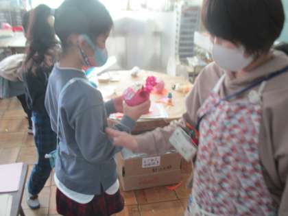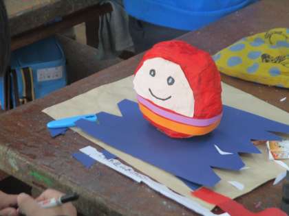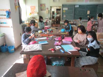 図工です。「だるまさんいらっしゃい!」というテーマで作品をつくります。楽しそうでした。