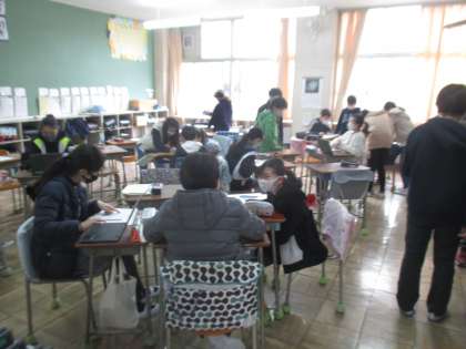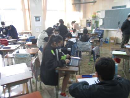 タブレットを使って日本のことを調べ、国際交流の時に発表します。