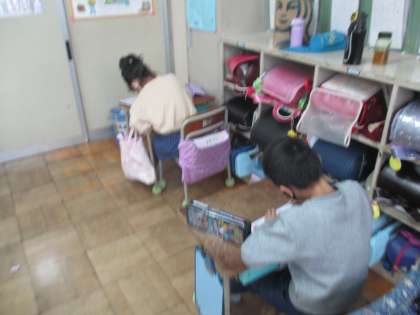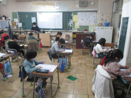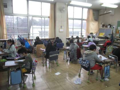 算数です。「100mをこえる長さ」のテストでした。頑張っていました。