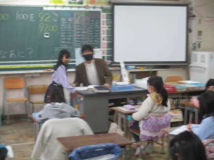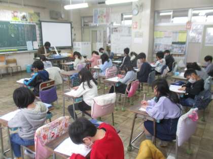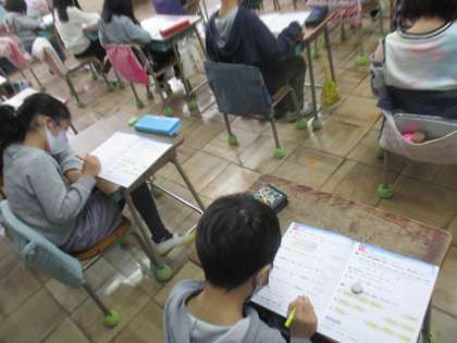 算数です。「1000をこえる数」のドリル問題に取り組みました。集中していました。
