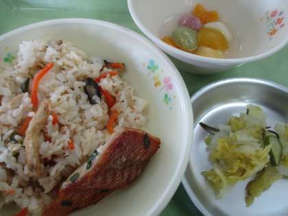 今日の給食では、ひしもちと同じ色合いの「ひなまつりフルーツ白玉」を作りました。願いを込めて作ったので、しっかり食べてくださいね。