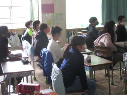 総合的な学習の時間です。先日行われた6年生を送る会のビデオを見て、6年生になる気持ちを高めました。
