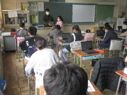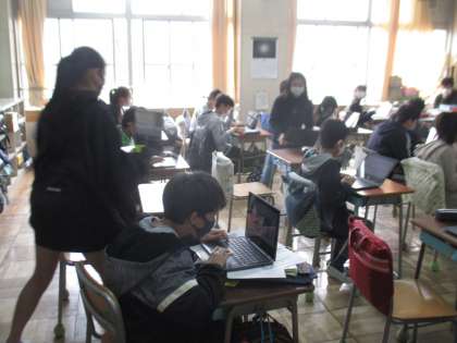 総合的な学習の時間です。クロームブックを使って国調べをしています。