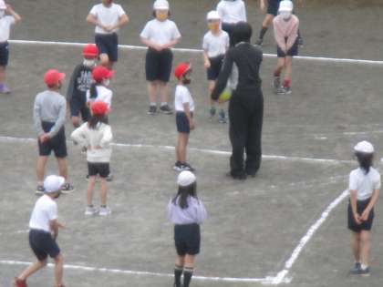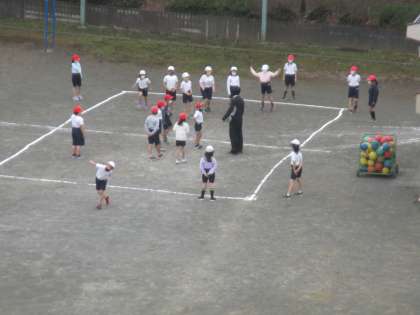 体育です。校庭でドッジボールに取り組みました。