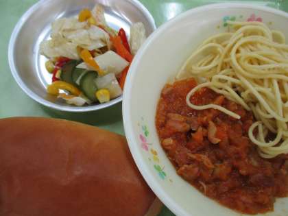 今日は、「食べよう!学ぼう!世界の料理・イタリア}です。イタリアは南北に細長く、山も海もある国です。少し日本に似ていますね。それぞれの地域ならではの特徴がある郷土料理もたくさんあります。味わって食べてください。