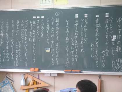 道徳です。「ゆうすけの朝」というお話について考えました。