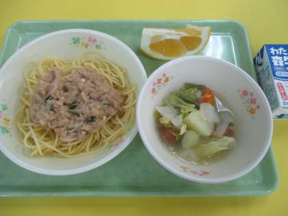 5月19日の給食 公開日 2021/05/19 更新日 2021/05/19 給食室より 19日のこんだては、 ・はち大根おろしスパゲティ ・ウインナーポトフ ・くだもの(美生柑1/4) ・牛乳 です。 八王子市は、東京都内で最も大根の生産量が多い市です。その大根を使ってスパゲティのソースを作りました。残さずおいしく食べてください! いいね(0)