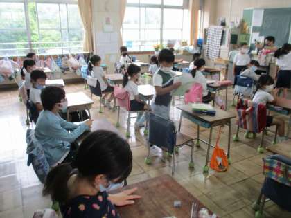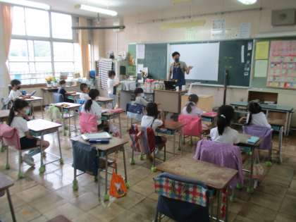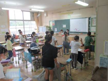 先生の話が始まりました。お隣は、日直が司会をしていました。