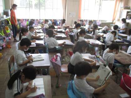 静かに取り組んでいます。お絵かきにも取り組みました。