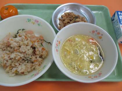 連日暑い日が続いてます。こんな時は、冷たいものが欲しくなります。でも、冷たいものが欲しくなります。でも、冷たいものばかり飲んだり食べたりしていると、食べ物のの消化・吸収する胃や腸のはたらきが悪くなってしまいます。温かい給食を食べて暑い日を乗り切りましょう!