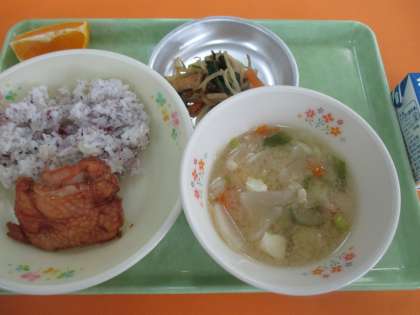 学校の梅の木もたくさんの実をつけています。梅の実はそのまま食べることはありませんが塩漬けにして干した「梅干し」は、古くから食べられている日本ならではの食品です。