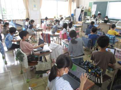 図工が変更となり、タブレットで学習を進めています。プログラミング学習の一環です。