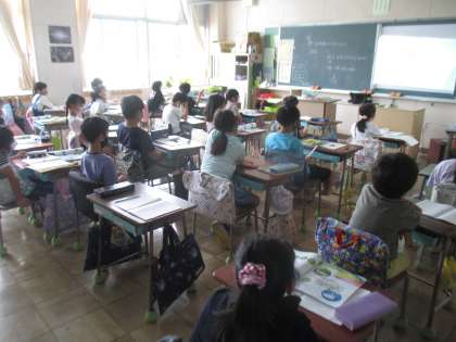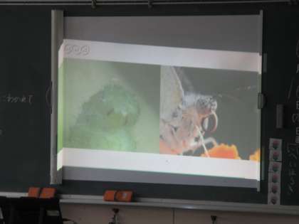 理科です。モンシロチョウの学習でした。まとめで画面を見ています。