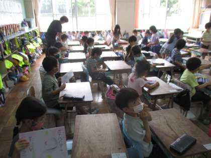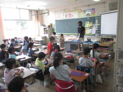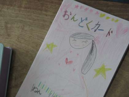 算数が始まるところです。机にかわいい音読カードがありました。もうすぐしまいます。