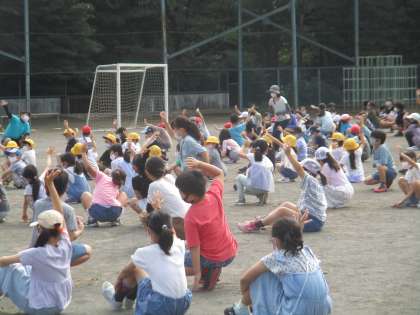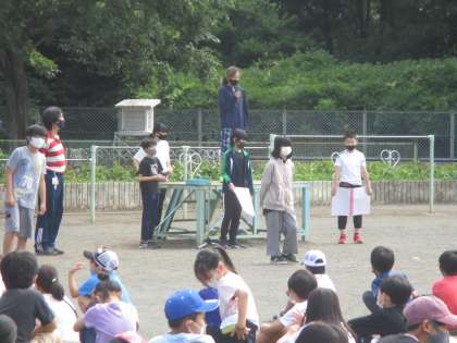 集会委員会の子がクイズをだしました。校庭のタイヤはいくつ?上り棒はいくつ?…。朝の時間を楽しみました。