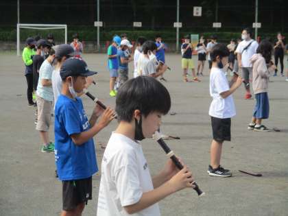 七夕のうたを1〜3年生が歌い、4〜6年生がリコーダーで演奏しました。
