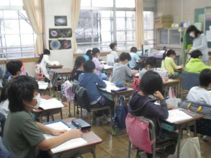 国語です。送り仮名の学習に取り組んでいました。