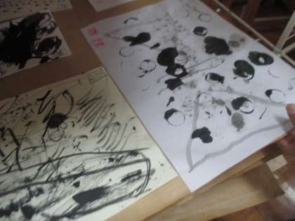 図工です。墨で白と黒の世界を描きました。