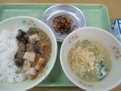 今日は、これからが旬の「秋ナス」を食べます。今日のうま味たっぷりの「秋ナス」は、八王子市で収穫されました。おいしい八王子産の「ナス」です。残さず食べましょう!