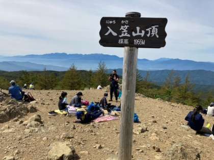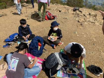 山頂でお昼です。おいしい空気を吸いながら、ご馳走にありつきます。