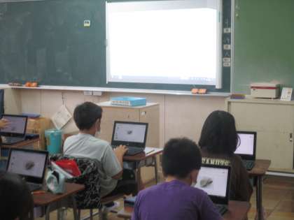 社会科です。伝統工芸についてタブレットで調べます。
