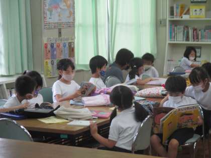 図書室で本を楽しむ時間でした。静かに本を読みました。