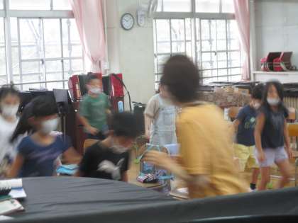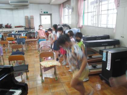 音楽でした。歌に合わせて体でリズムを取ります。自然と体が動きます。