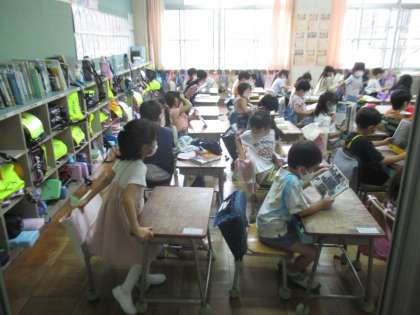 体育が終わり、着替えた子から読書になりました。今全員が着替え終わったところです。
