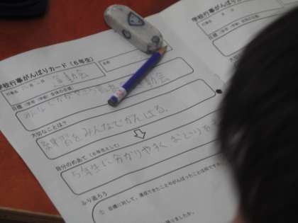 道徳の時間が終わり、少し残った時間を使って、運動会に向けてのがんばりどころをキャリアパスポートに書き出していました。
