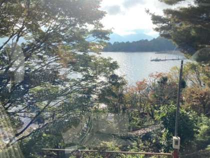 中禅寺湖です。1000mを越える高さまで登ってきました。