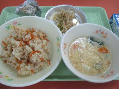 10月8日の給食 公開日 2021/10/15 更新日 2021/10/15 給食室より 8日のこんだては、 ・にんじんごはん ・ミニいが蒸し ・かきたま汁 ・野菜の和え物 ・牛乳 です。 10月10日は「目の愛護デー」です。給食では、一足早いですが、今日の給食で目の健康を保つための栄養がたっぷり入ったメニューを食べます。しっかり食べて大切なめを労わりましょう。 いいね(0)